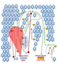 左のゲレンデマップ左下の赤くなった部分が、ライブカメラに写っているところです。
