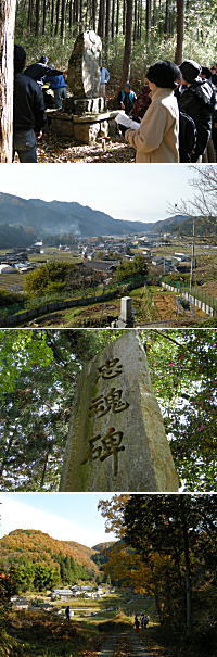 その後、紅葉に染まる林道を抜けながらいくつかの史跡を巡り、11時過ぎに終了となりました。私の役員の任期はまだあと1年ありますので、来年も参加しますが、ちょっとおもしろい体験ができました。ただ、参加者30人弱の平均年齢はど〜みても60歳以上。今日はカズさんがついて来てくれたので、退屈せずにすんだのですが、一人では参加出来ませんね。ちょっと、つらいかも・・・。