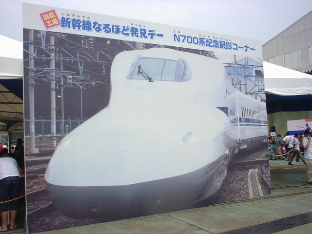 浜松工場の入り口では次世代新幹線N700系の巨大看板がお出迎え