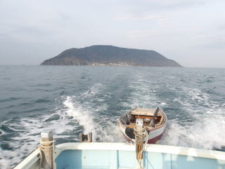 ロープなど準備をして、伝馬船を引っ張って田ノ浦に行く。チェンソーを持ってログハウスまで上がり、太陽光パネルの場所に行く道の灌木を切って行きやすくする。太陽光パネルは古くなり、発電ができなくなっているが場所は整備しておくと良いと思う。ログハウスからの降りる道がちょっとだけ見えなくなっているところの草刈りもしておく。行きは良い凪だったが帰りには少し西風が出てきた。